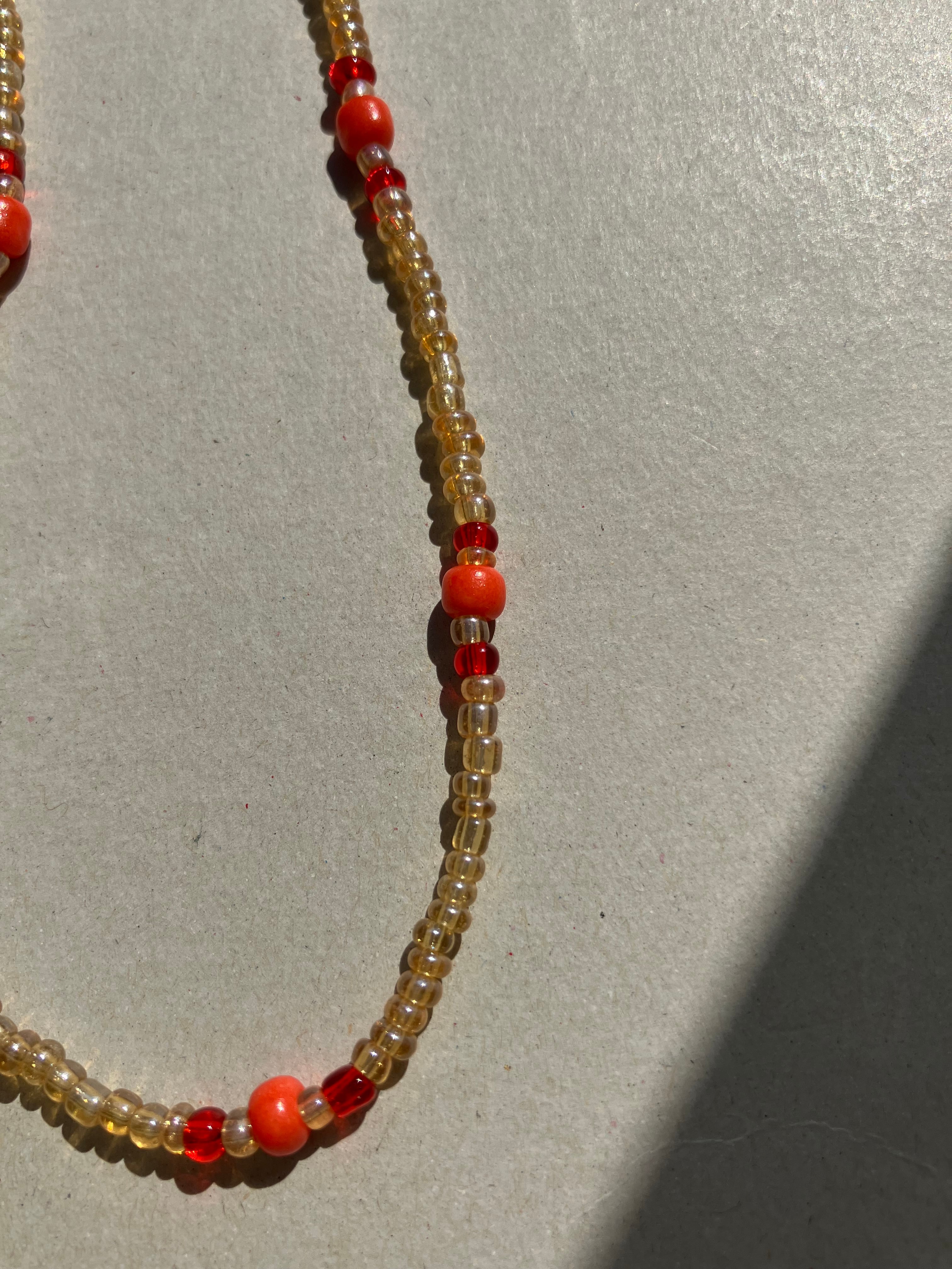 デザインビーズネックレス red ×gold 38.40.45cmが登場しました!この美しいネックレスは、ビーズのみで作られており、金属を一切使用していません。金属アレルギーの方でも安心して1日中つけていただける設計です。