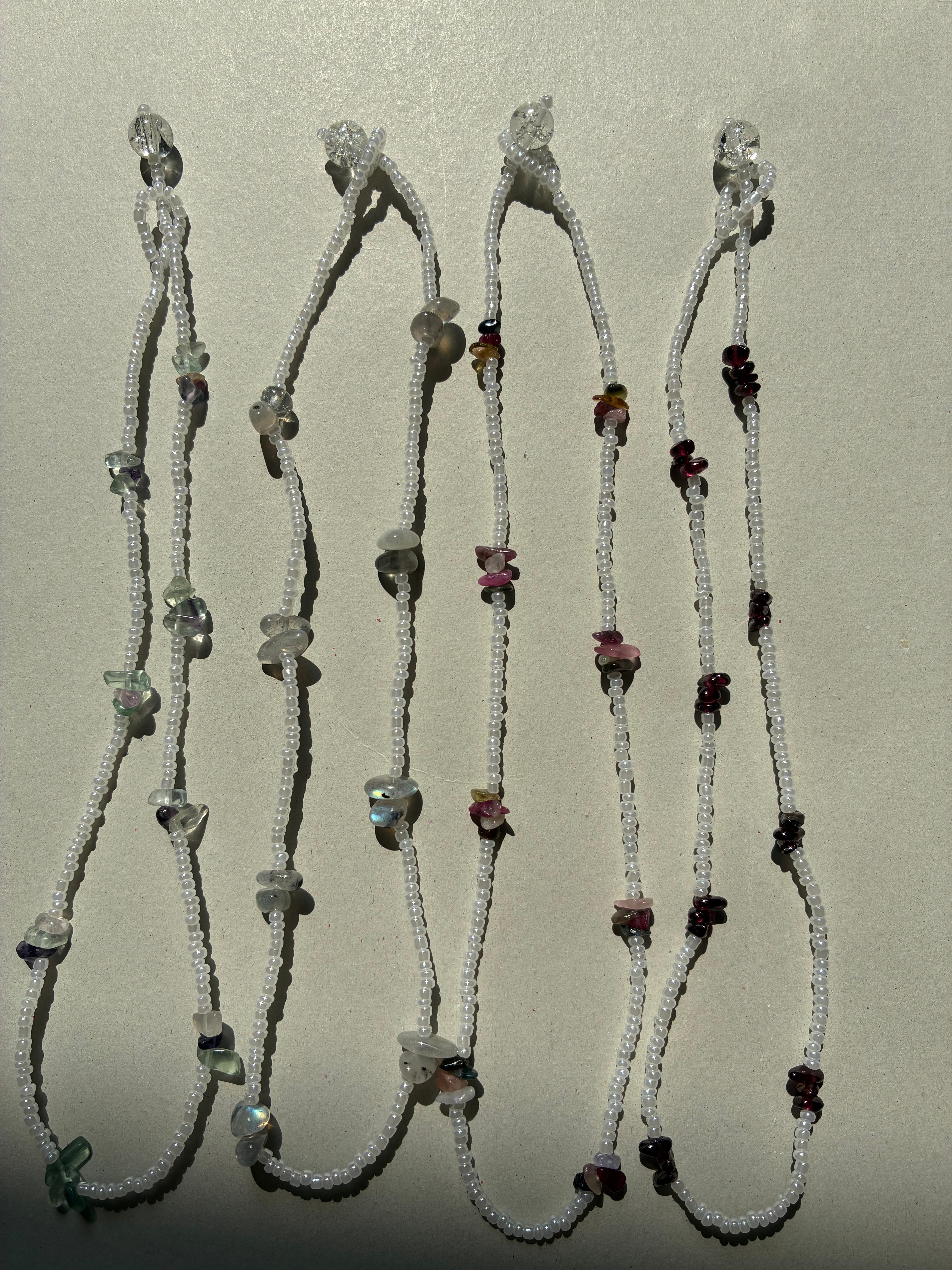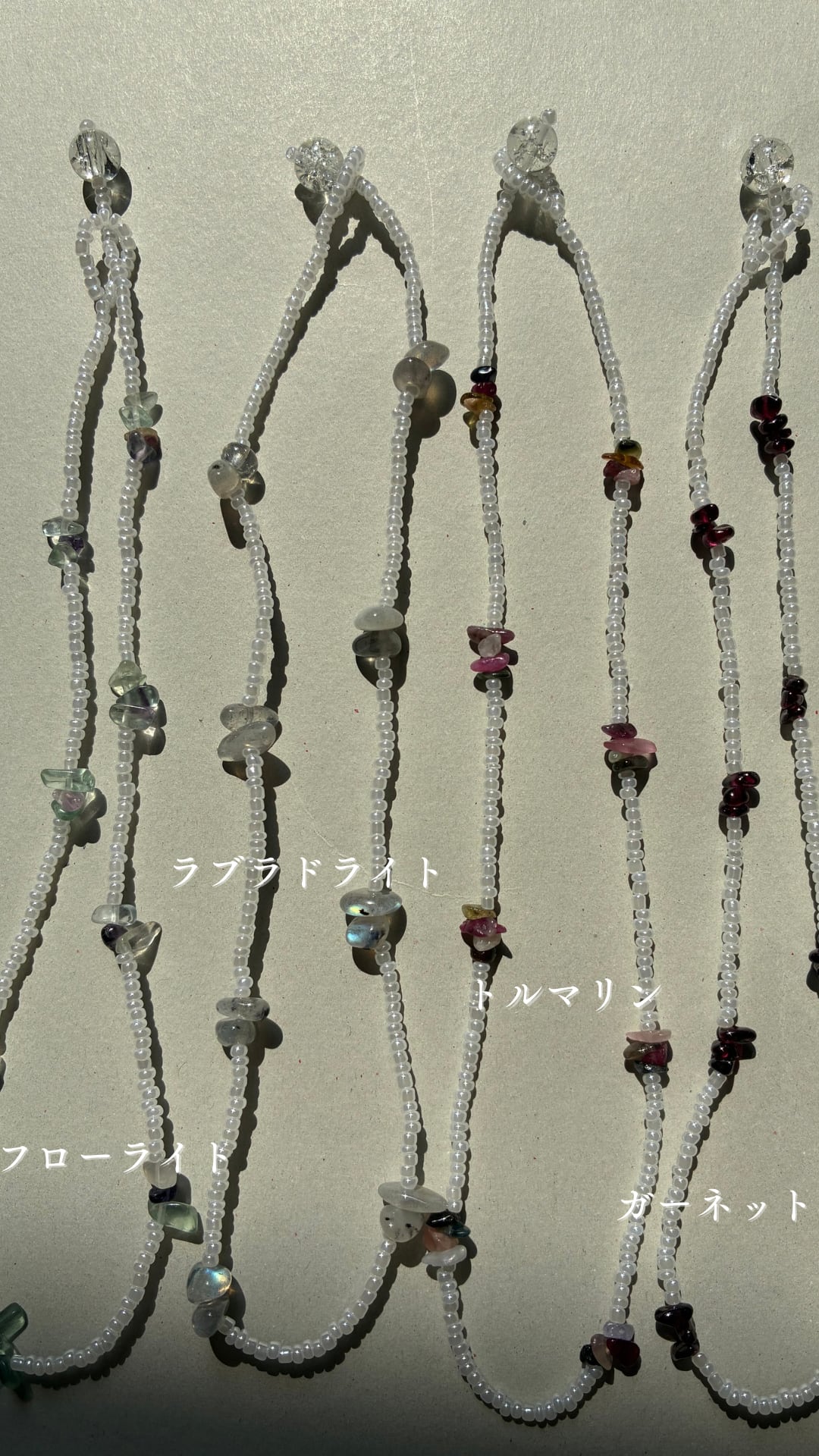 小粒天然石×ホワイト2mmビーズネックレス 約39cm/約45cm