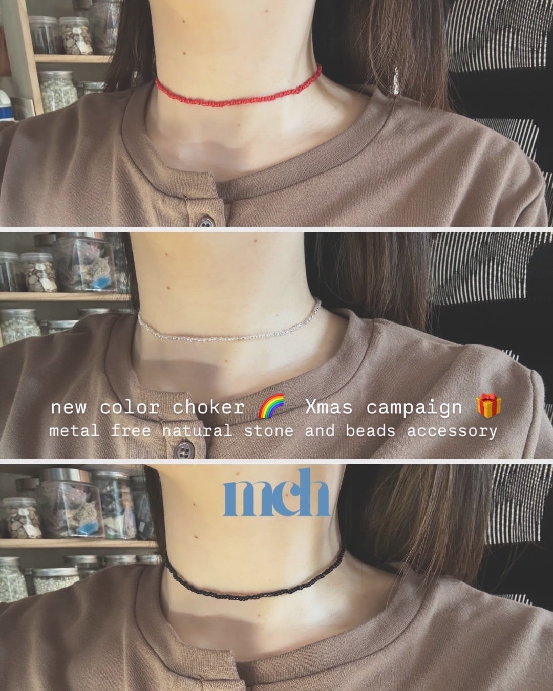 ビーズオンリーチョーカー 34/35/36cmが登場しました!この魅力的なチョーカーは、ビーズと天然石のみで作られており、金属を一切使用していません。金属アレルギーの方でも安心して1日中つけていただける設計です。