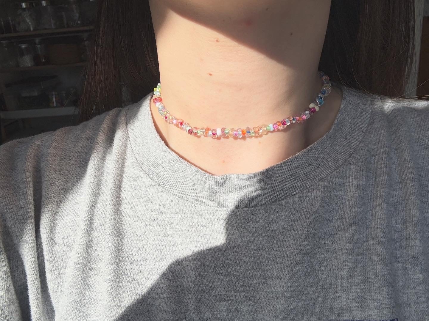 あめちゃんファルファーレチョーカー33/34/35/36/37cmが登場しました!この魅力的なネックレスは、ビーズのみで作られており、金属を一切使用していません。金属アレルギーの方でも安心して1日中つけていただける設計です。