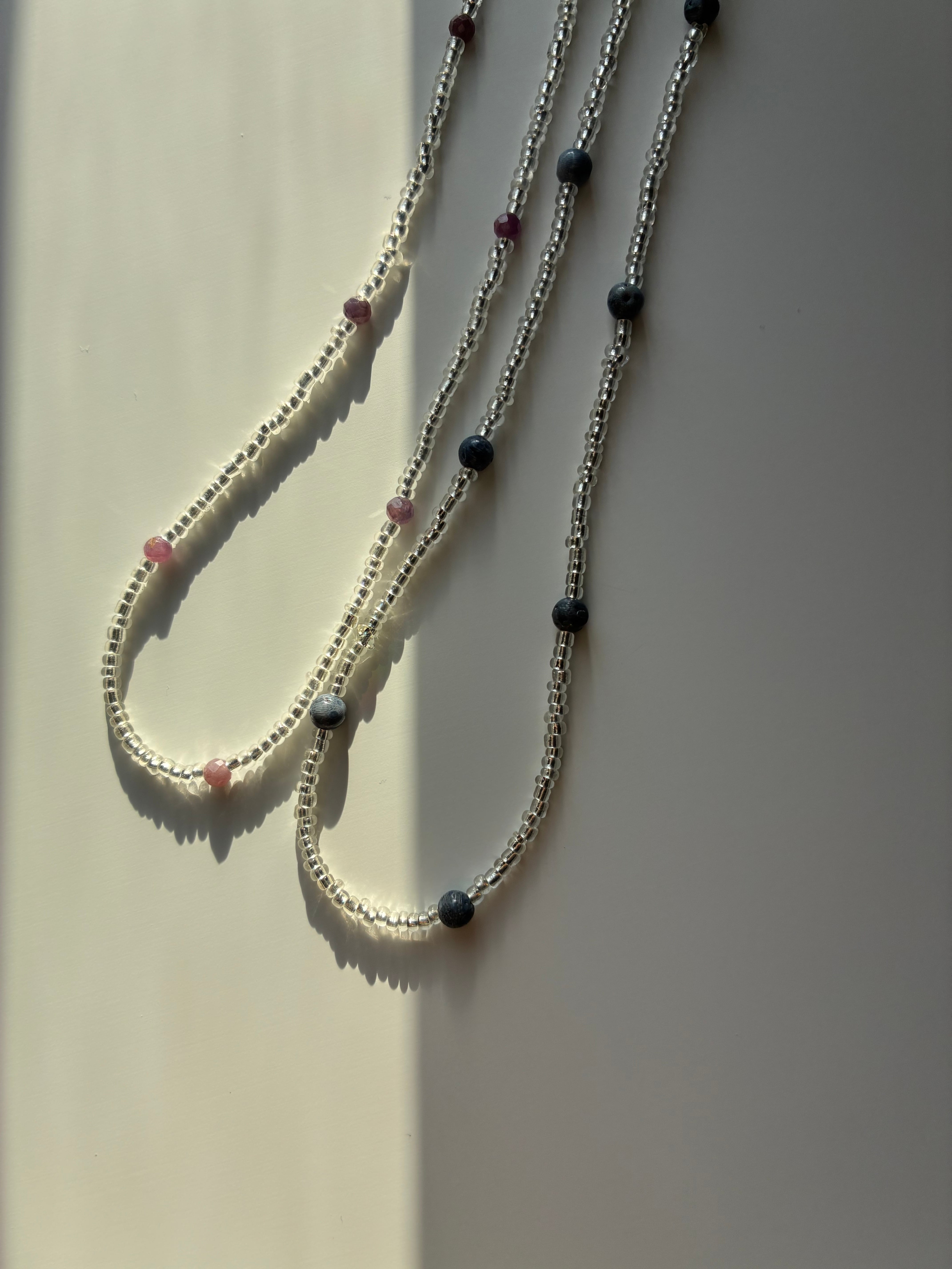 青サンゴ/バイオレットサファイア×ホワイトシルバー2mmビーズ 36/38/40/45cm