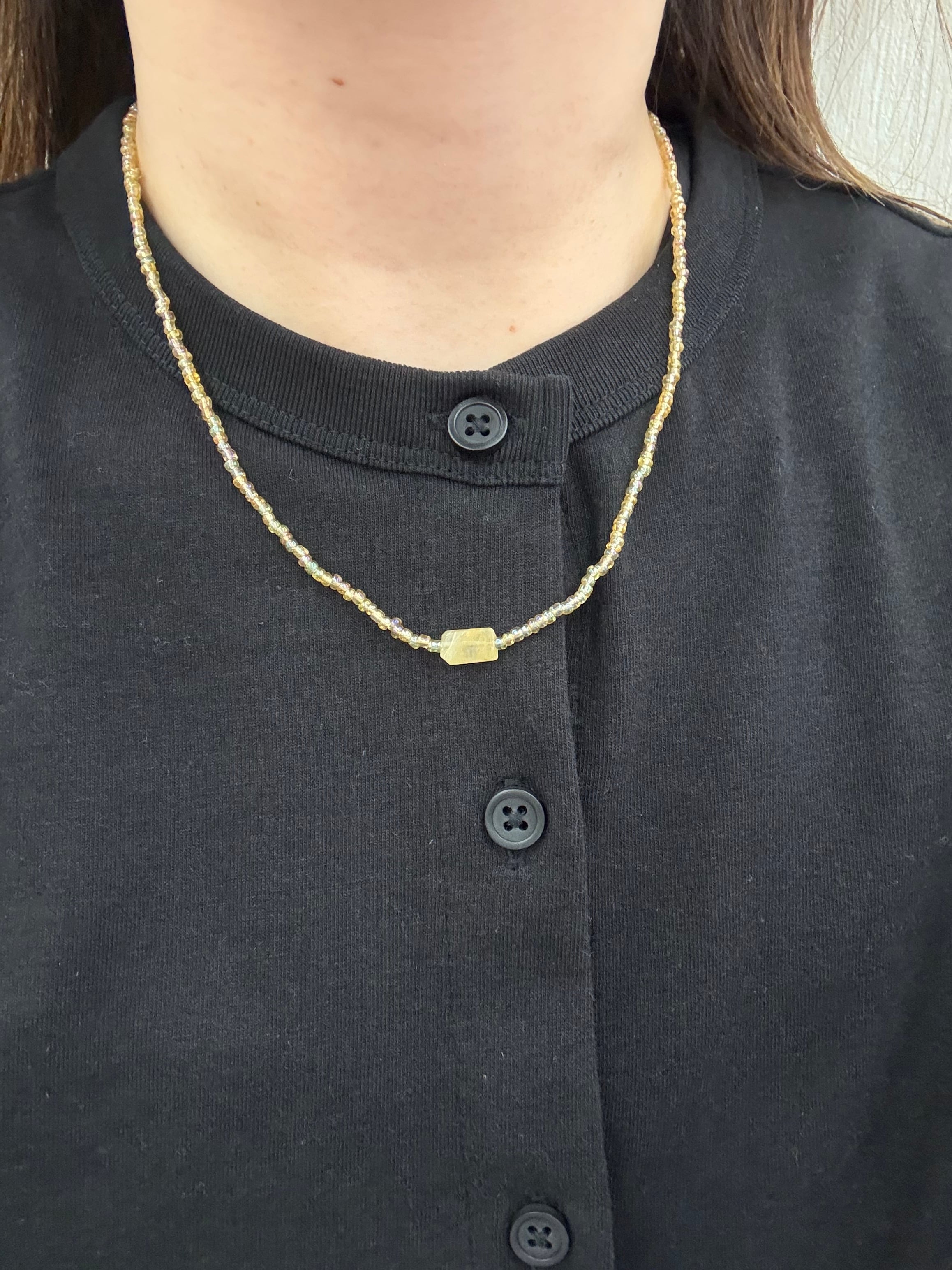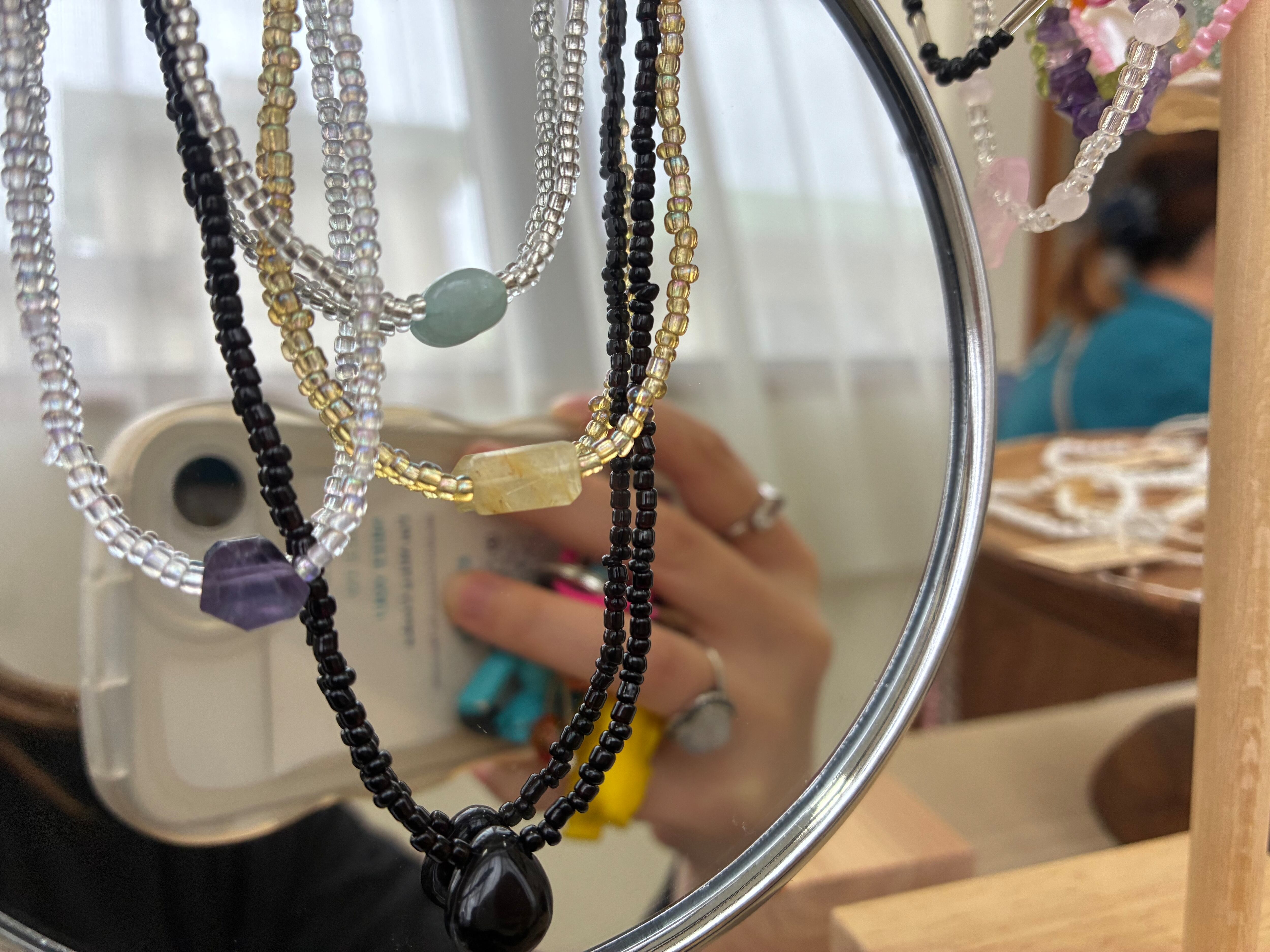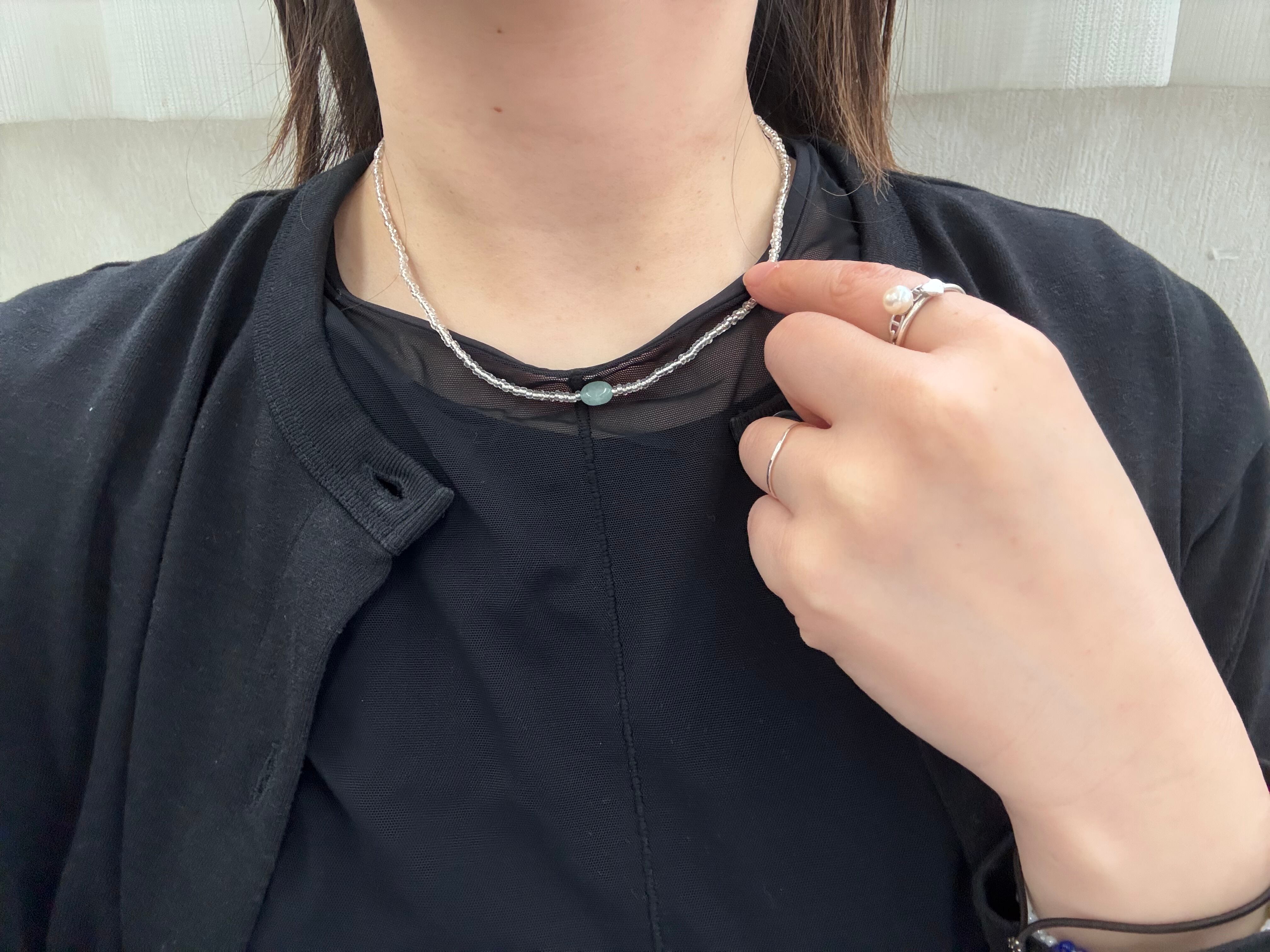 ブラックアゲート、フローライト、アクアマリン、ルチルクォーツ38/40/45/50cmが登場しました!この魅力的な商品は、ブラックアゲート、フローライト、アクアマリン、ルチルクォーツのビーズのみで作られており、金属を一切使用していません。金属アレルギーの方でも安心して1日中つけていただける設計です。