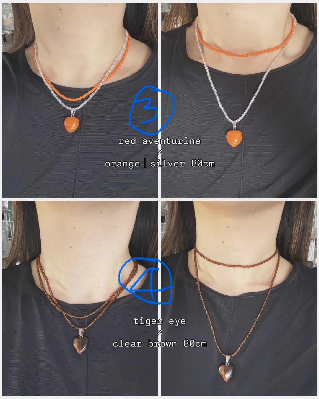 ハートチャームは外してビーズネックレスだけでも使えます!