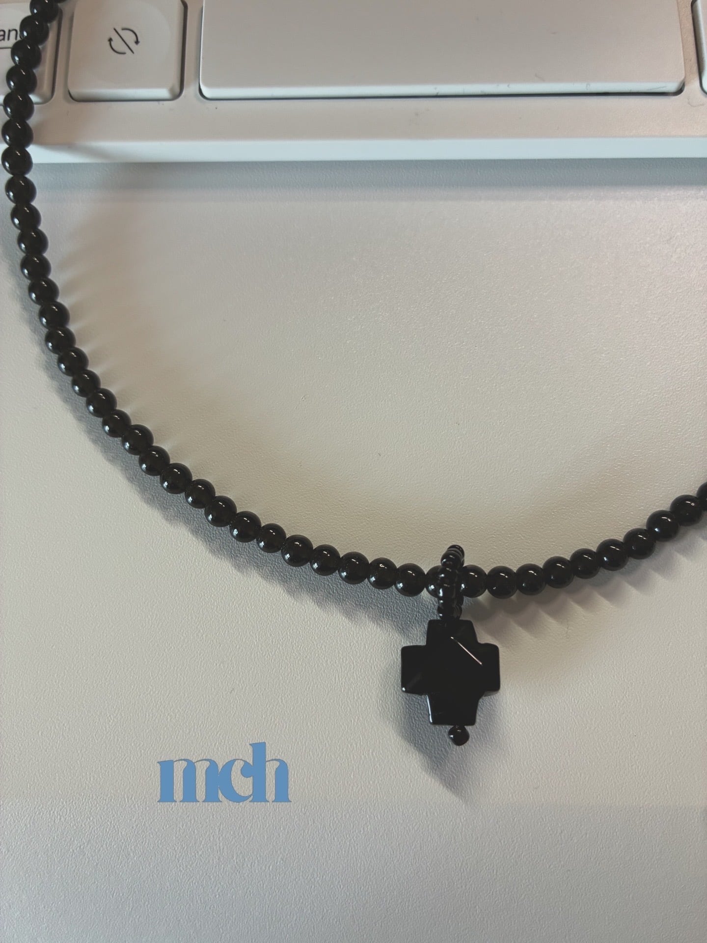 商品名:オニキスクロスチャーム×オブシディアン4mmネックレス 38/40/42/45cm